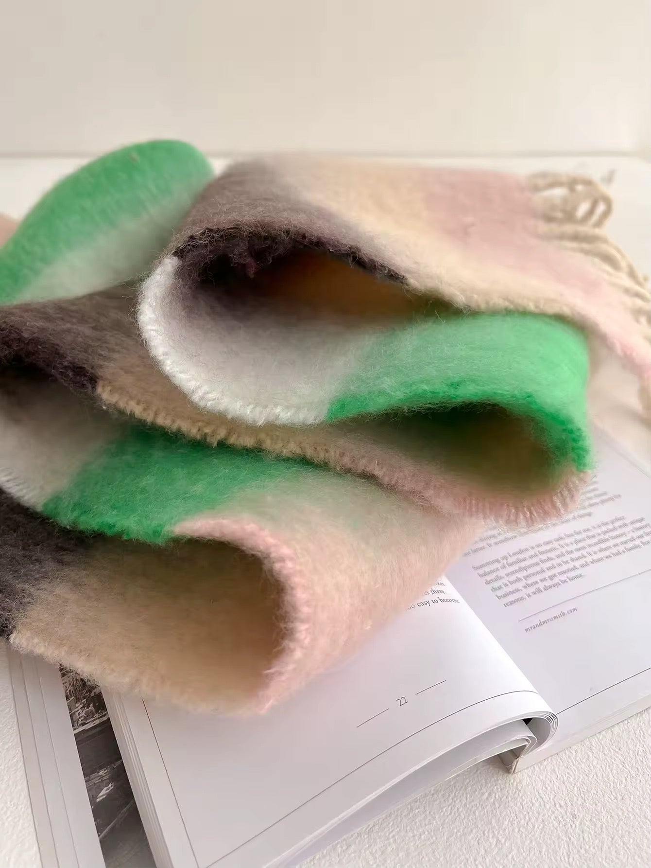 Women & Men Wool Autumn Winter Plaid Warmth Scarf Furry Mohair Shawl Women Woollen