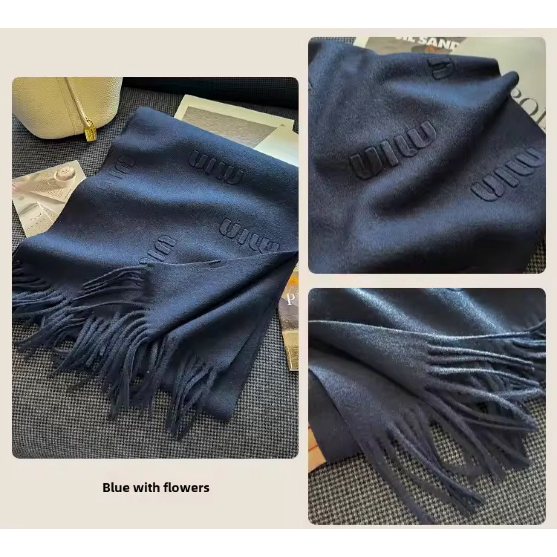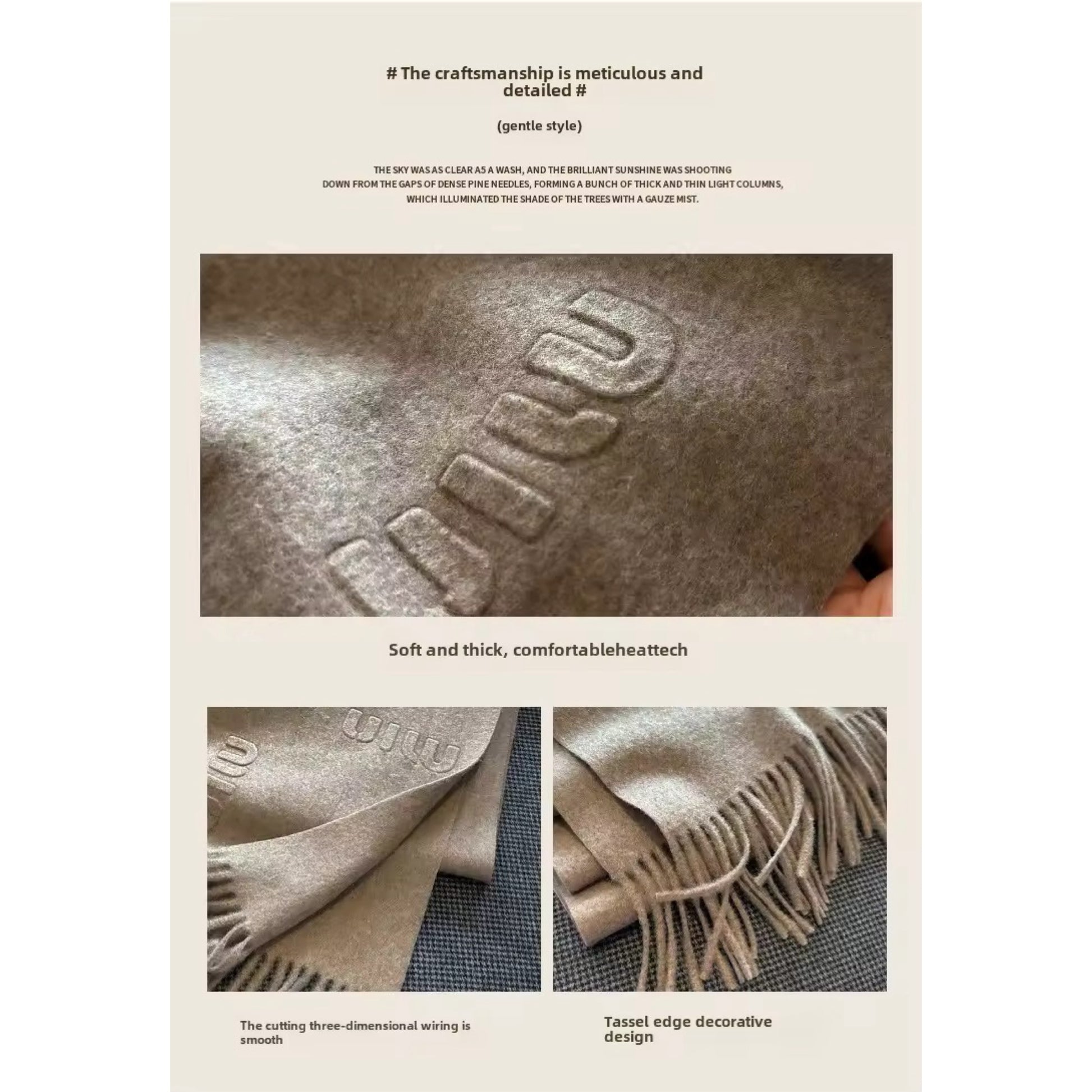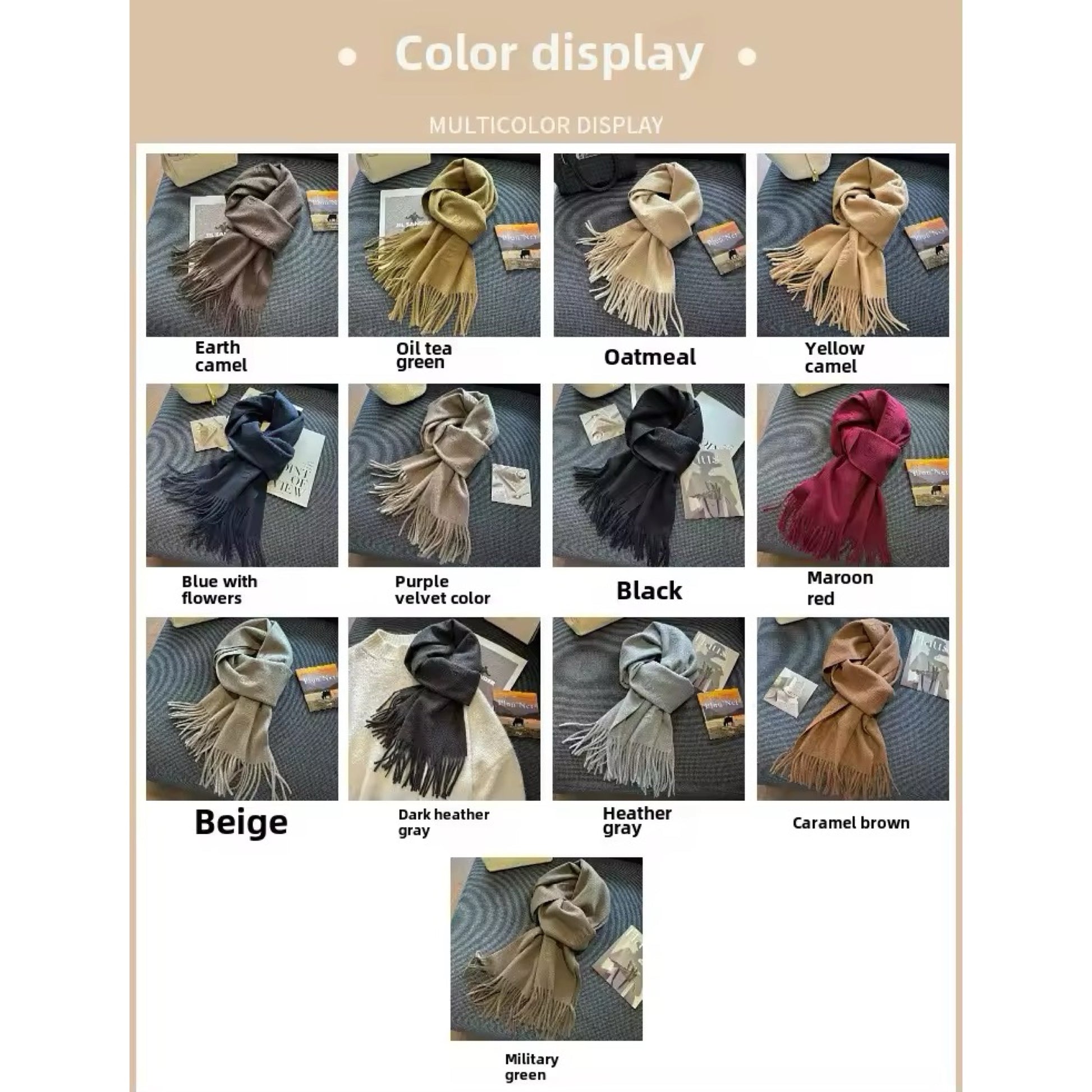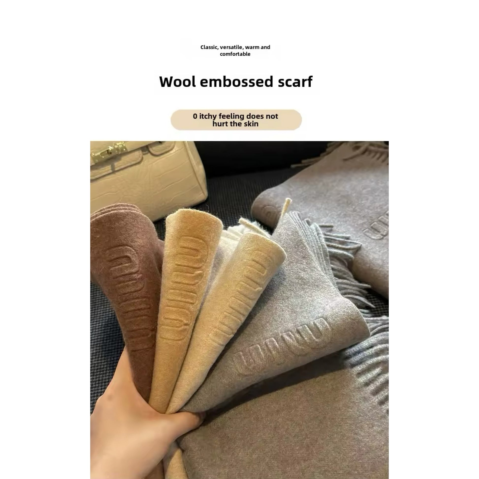 Women & Men Wool Scarf Embossed Simple Warm Muffler Cashmere Thick Fringed Shawl Women Woollen