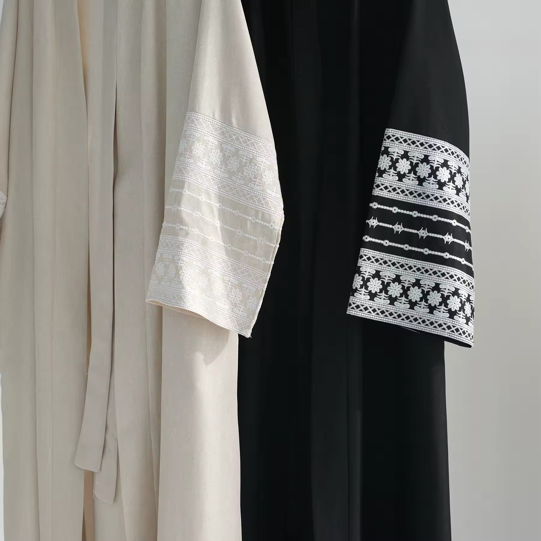Women Split Abaya Fashion Embroidery Kimono Oversized Open Front Robe Syari Full Length Outerwear With Belt
