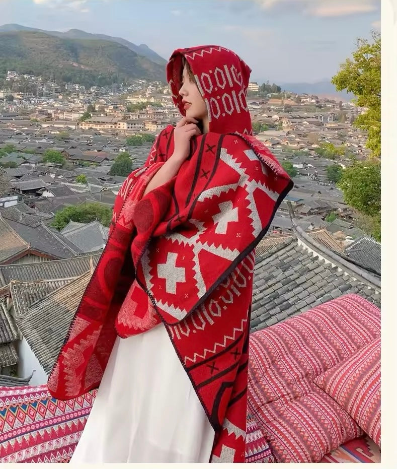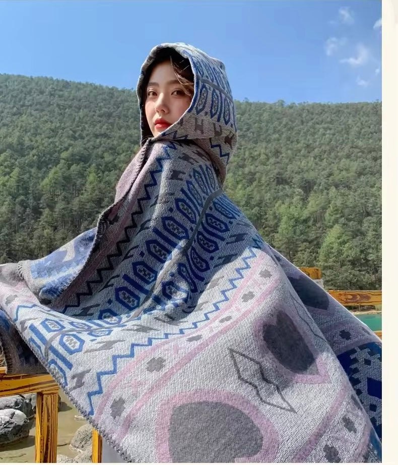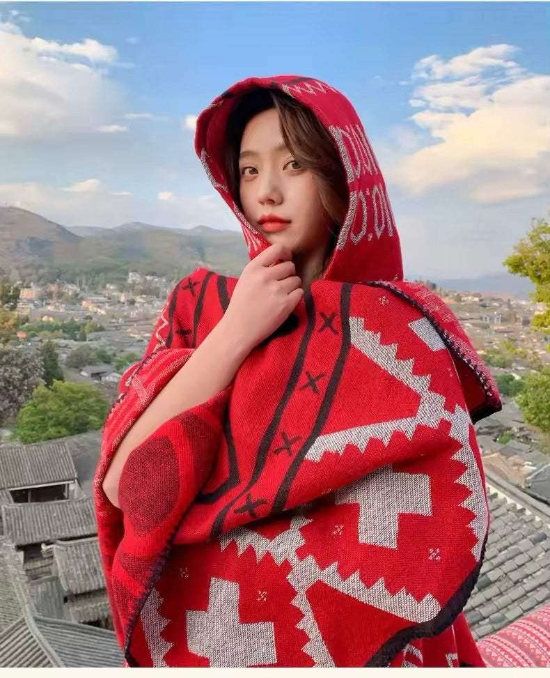 Cashmere Wool Cape Scarf Split Thickened Autumn and Winter Women Cape