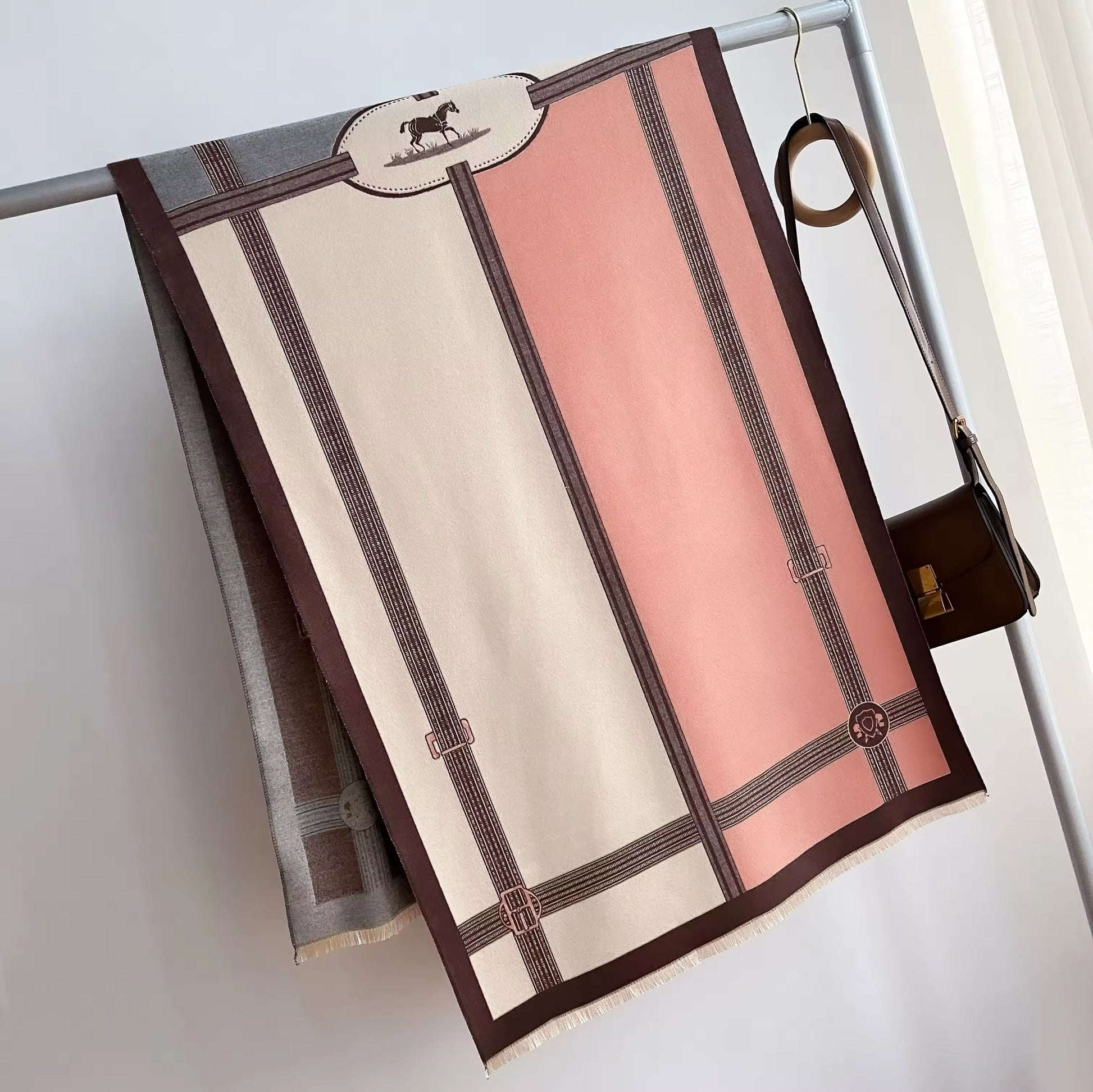 Luxury Women Limited Edition Horse Design Cashmere Touch Scarf - Warm Fringe Shawl