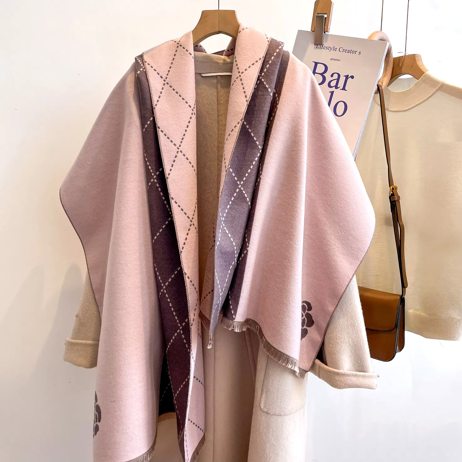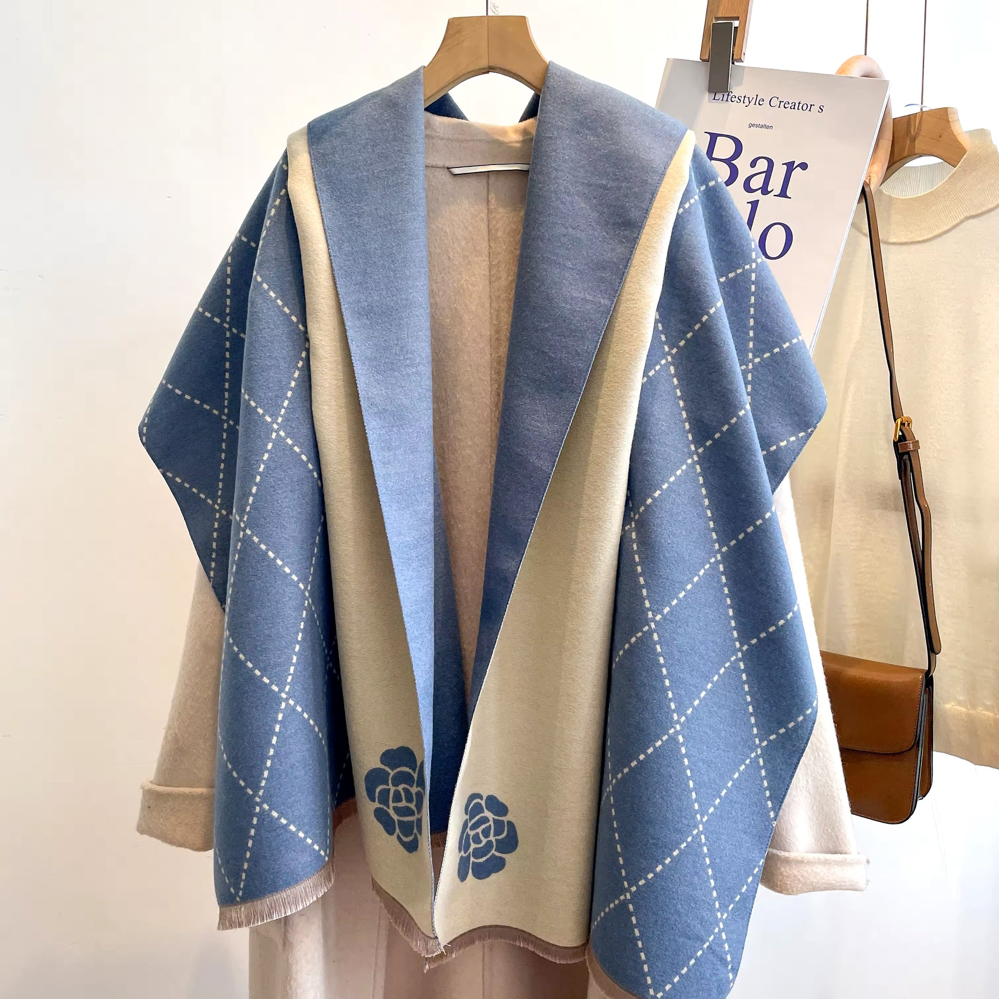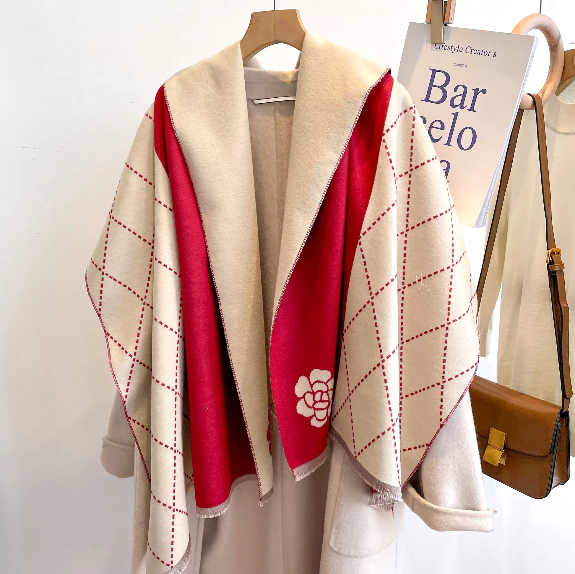 New Luxury Women Floral Camellia Cashmere Touch Scarf - Warm Fringe Pashmina Shawl Bufanda UK