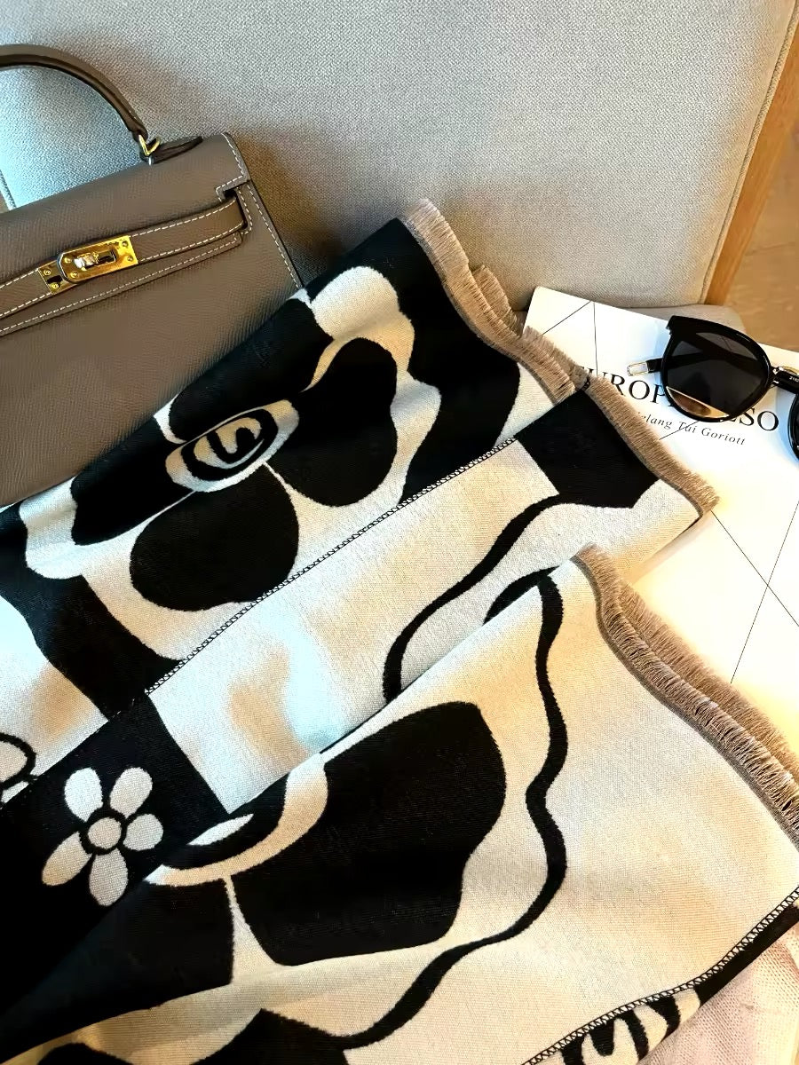 Luxury Women Limited Edition Floral Cashmere Touch Flower Scarf - Warm Fringe Shawl