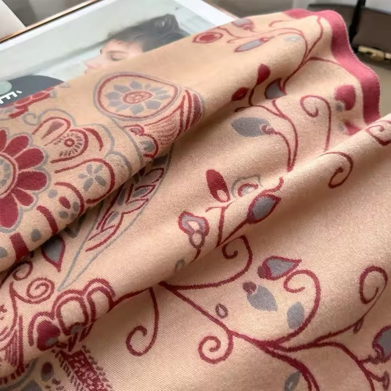 "Upgrade your scarf game with our New Luxury Floral Cashmere touch Scarf. Made from the softest cashmere, this pashmina shawl adds a touch of warmth and elegance to any outfit. Measuring 65x180 cm, it's perfect for all seasons. The eye-catching floral design makes it a great holiday gift for your loved ones."