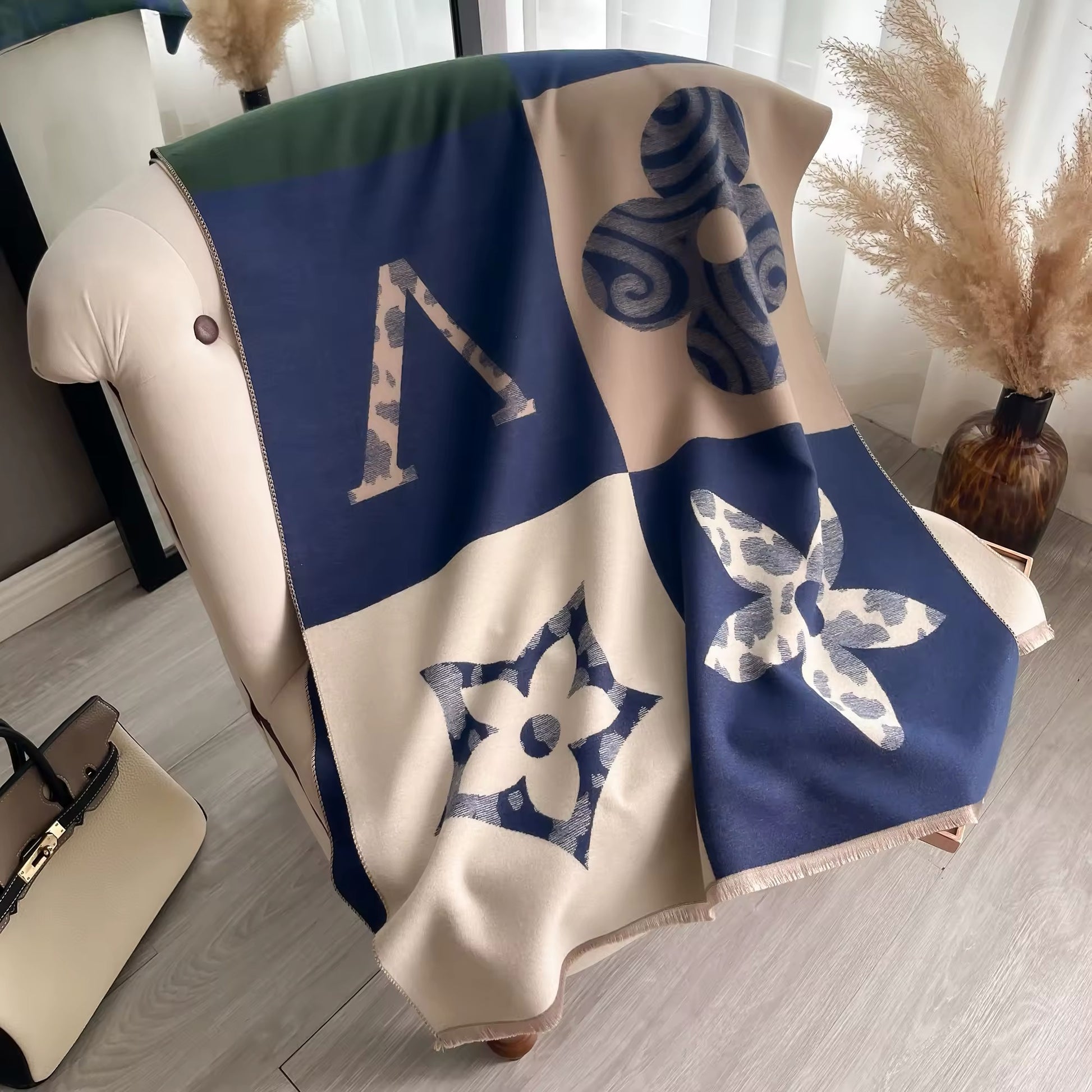 Luxury Women Floral Cashmere Touch Flower Scarf - Warm Fringe Shawl