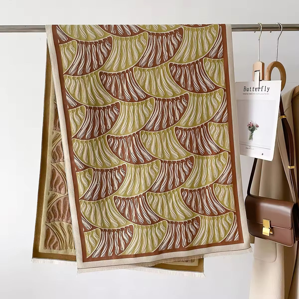 "Upgrade your scarf game with our New Luxury Floral Cashmere touch Scarf. Made from the softest cashmere, this pashmina shawl adds a touch of warmth and elegance to any outfit. Measuring 65x180 cm, it's perfect for all seasons. The eye-catching floral design makes it a great holiday gift for your loved ones in the UK."