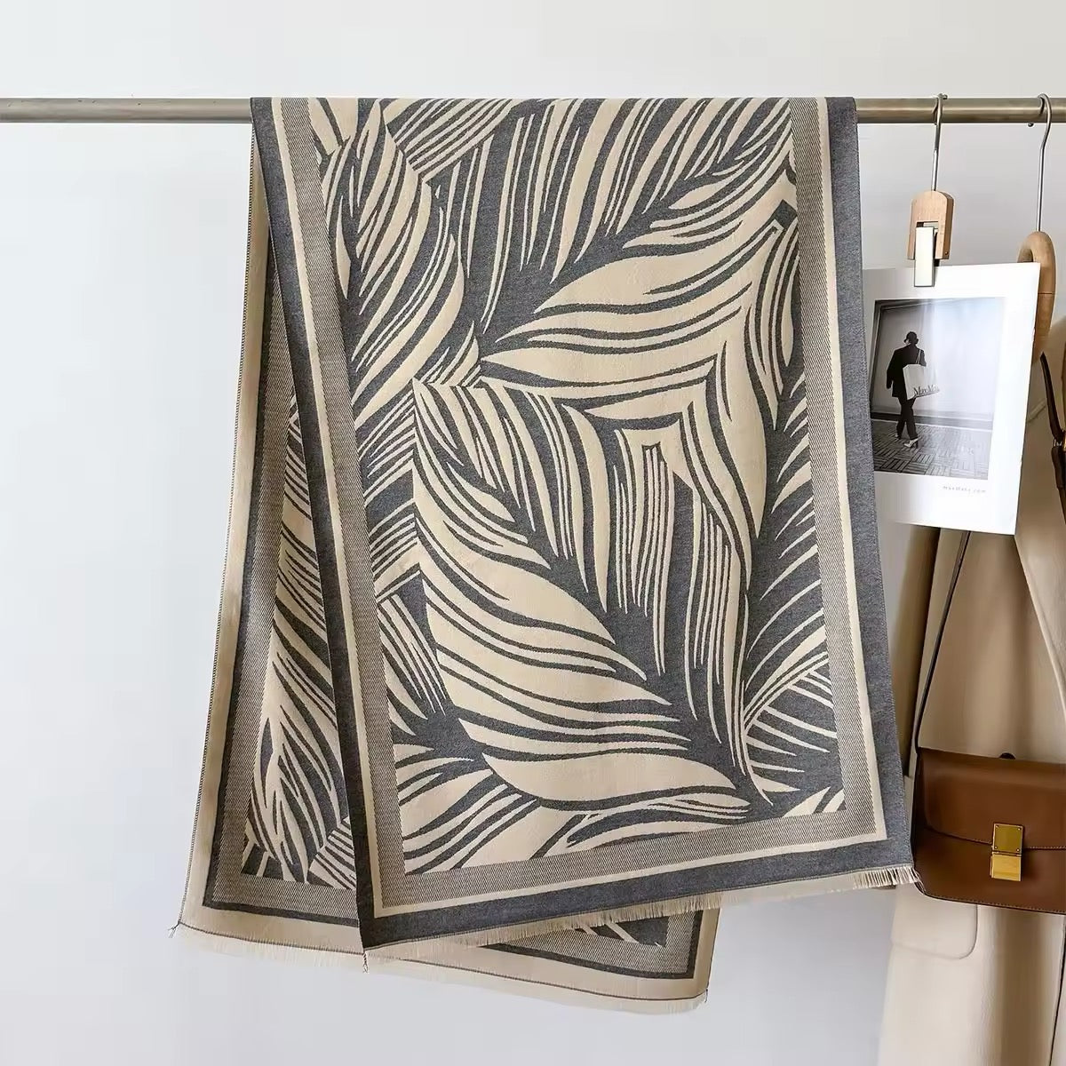 "Upgrade your scarf game with our New Luxury Floral Cashmere touch Scarf. Made from the softest cashmere, this pashmina shawl adds a touch of warmth and elegance to any outfit. Measuring 65x180 cm, it's perfect for all seasons. The eye-catching floral design makes it a great holiday gift for your loved ones."