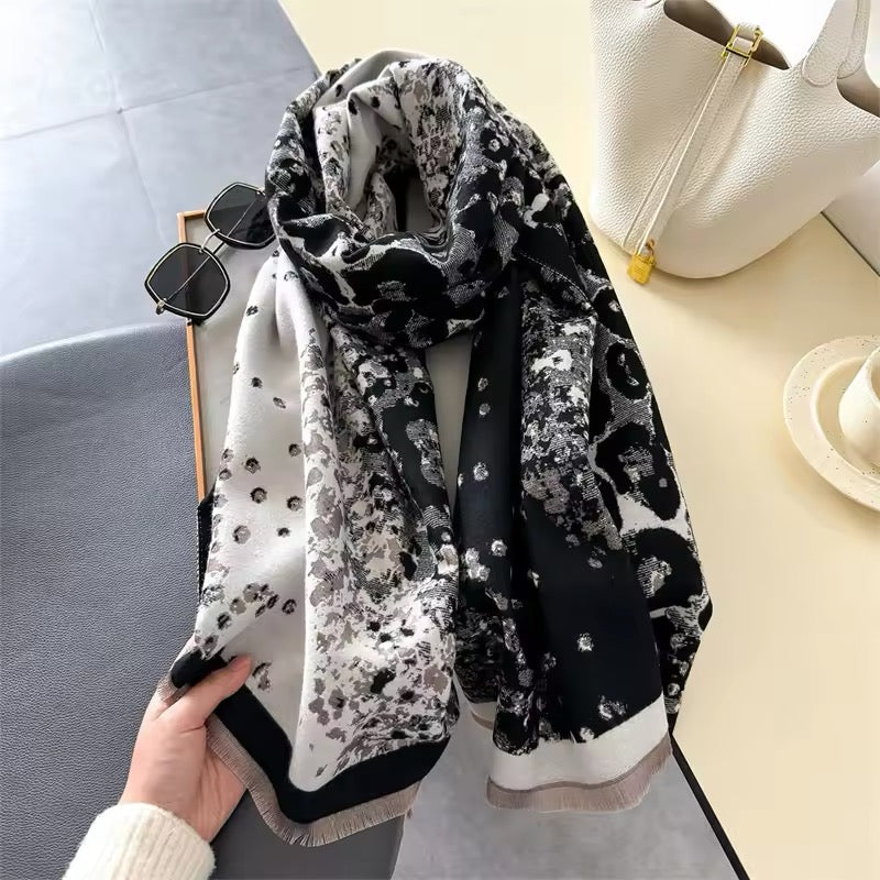 Leopard Print Scarf Thickened Warm Cashmere Double Sided Shawl Women Allure