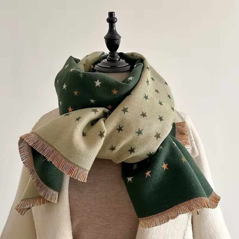 Women Luxurious Cashmere Touch Scarf - Warm Fringe Shawl