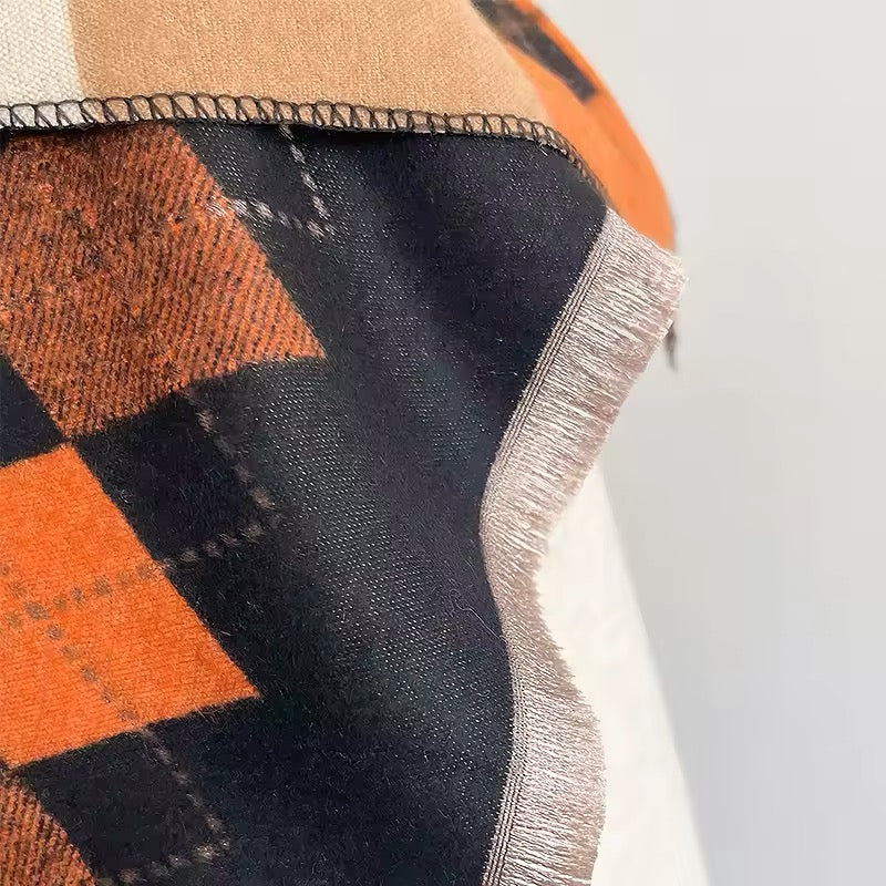 Women Luxurious Cashmere Touch Scarf - Warm Fringe Shawl