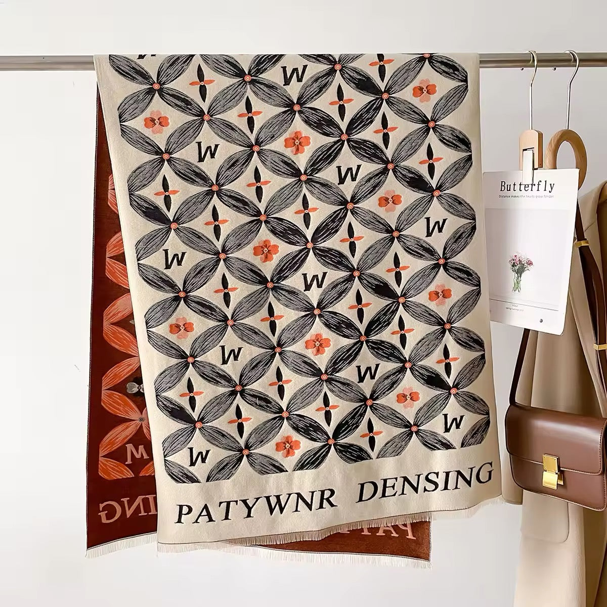 "Upgrade your scarf game with our New Luxury Cashmere touch Scarf. Made from the softest cashmere, this pashmina shawl adds a touch of warmth and elegance to any outfit. Measuring 65x180cm, it's perfect for all seasons. The eye-catching design makes it a great holiday gift for your loved ones."