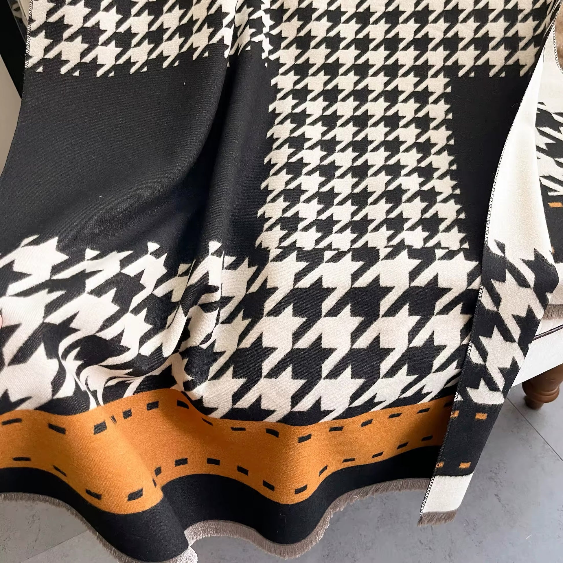 "Upgrade your scarf game with our New Luxury Cashmere touch Scarf. Made from the softest cashmere, this pashmina shawl adds a touch of warmth and elegance to any outfit. Measuring 65x180 cm, it's perfect for all seasons. The eye-catching design makes it a great holiday gift for your loved ones."